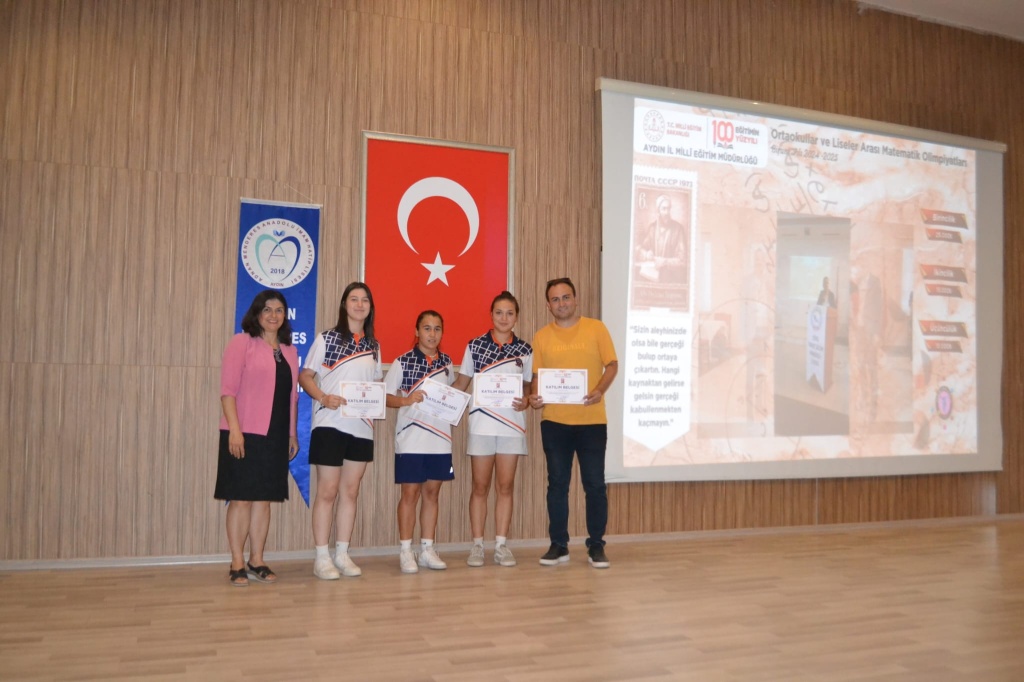 Aydın il milli eğitim Müdürlüğümüz tarafından bu yıl 2.si düzenlenen Biruni yılı matematik olimpiyatları il ödül töreni il milli eğitim müdürümüz Sayın Süleyman Ekici'nin de katılımıyla gerçekleştirildi. İlçe birincilerimiz de törende katılım belgelerini aldılar. İlçe birincisi öğrenci ve emeği geçen öğretmenlerimizi tebrik ediyoruz.